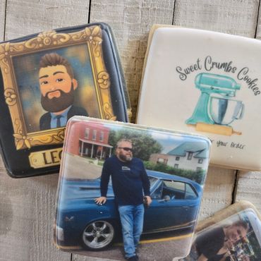 Your design, logo, or pictures printed directly on a cookie start at $55 a dozen. These cookies will be individually packaged. May include multiple pictures. You will need to supply the pictures or logo for printing. If any hand iced designs are added, pricing will be adjusted.